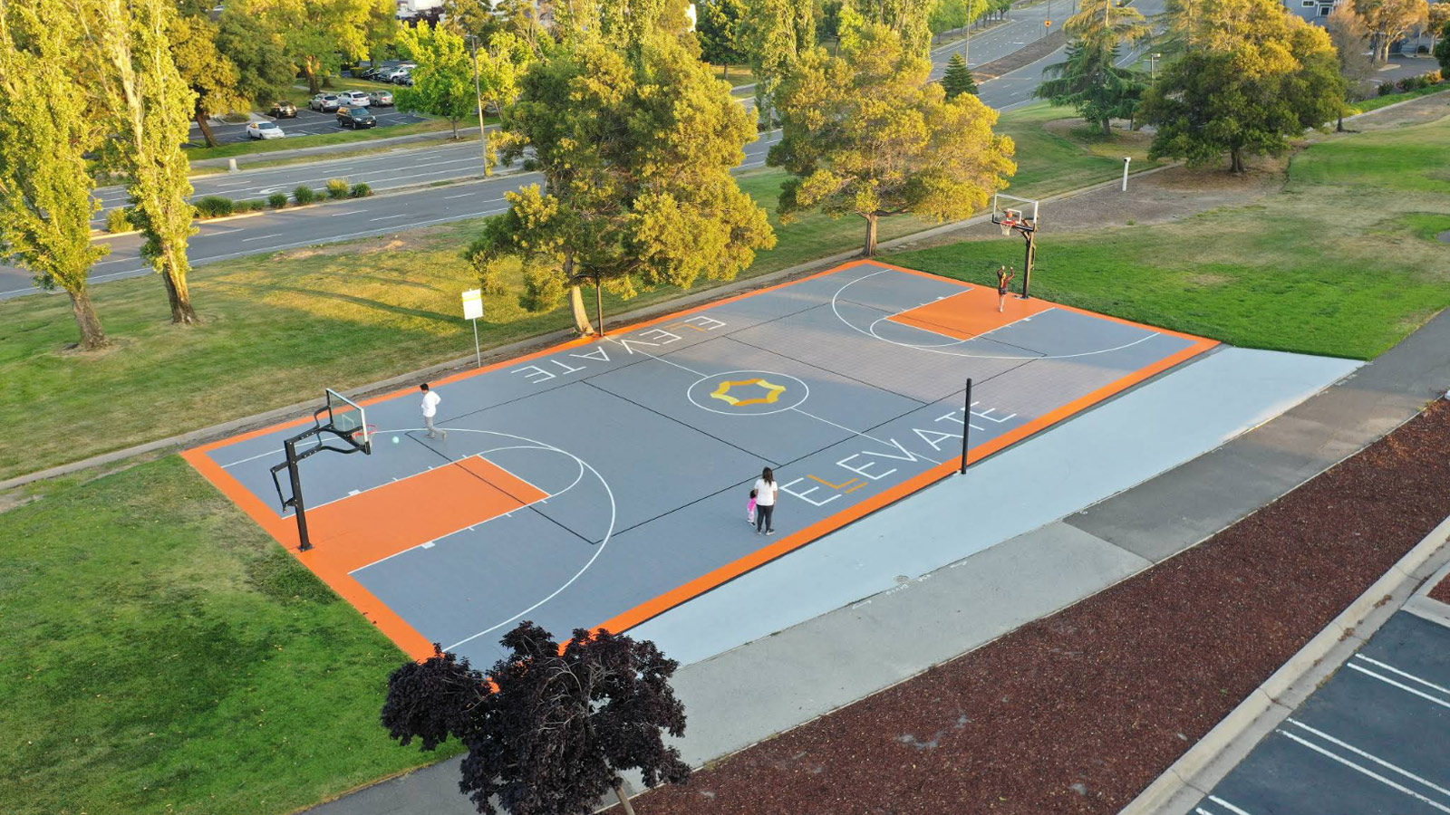 Баскетбольная площадка в Редвуд-Шорс недалеко от штаб-квартиры Trion Worlds |